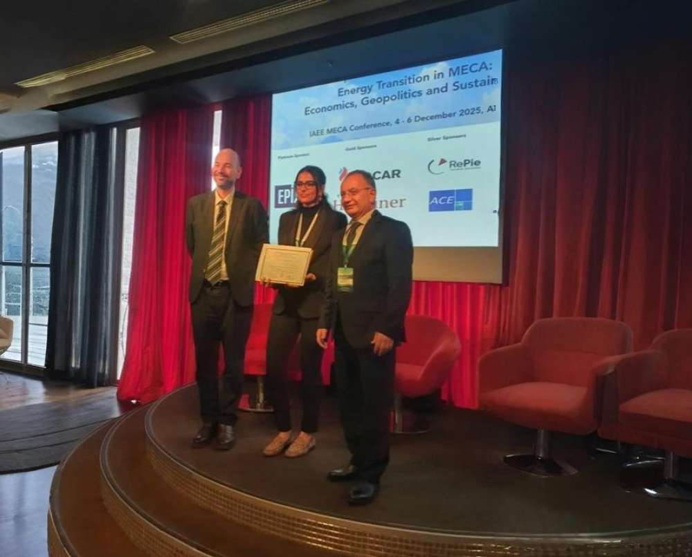 طالبة دكتوراه في جامعة خليفة تفوز بجائزة أفضل ورقة بحثية في مؤتمر الجمعية الدولية لاقتصاديات الطاقة لمنطقة الشرق الأوسط وآسيا الوسطى لعام 2025 في تركيا